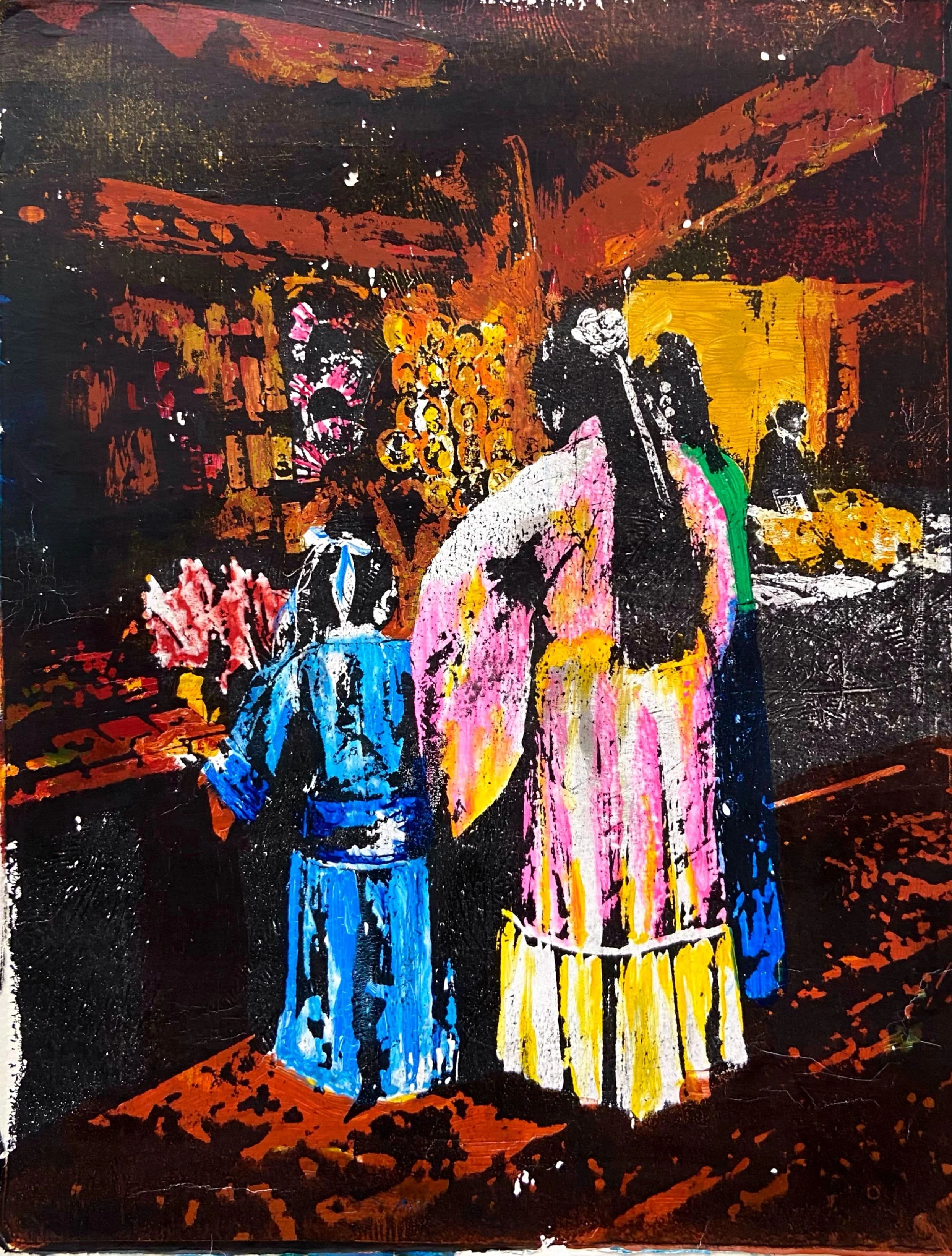 "Xi'an girls" 22x30cm gelliprint monoprint on 300g Canson Barbizon. 2024 ✨ SOLD OUT ✨